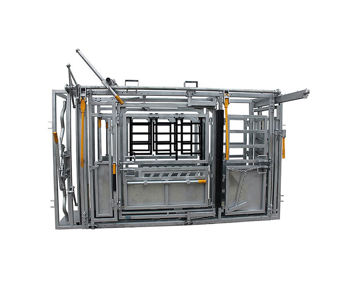 - Key Components: Manual/ hydraulic head gate; adjustable belly strap; side locking bars; anti-slip rubber floor; removable access doors